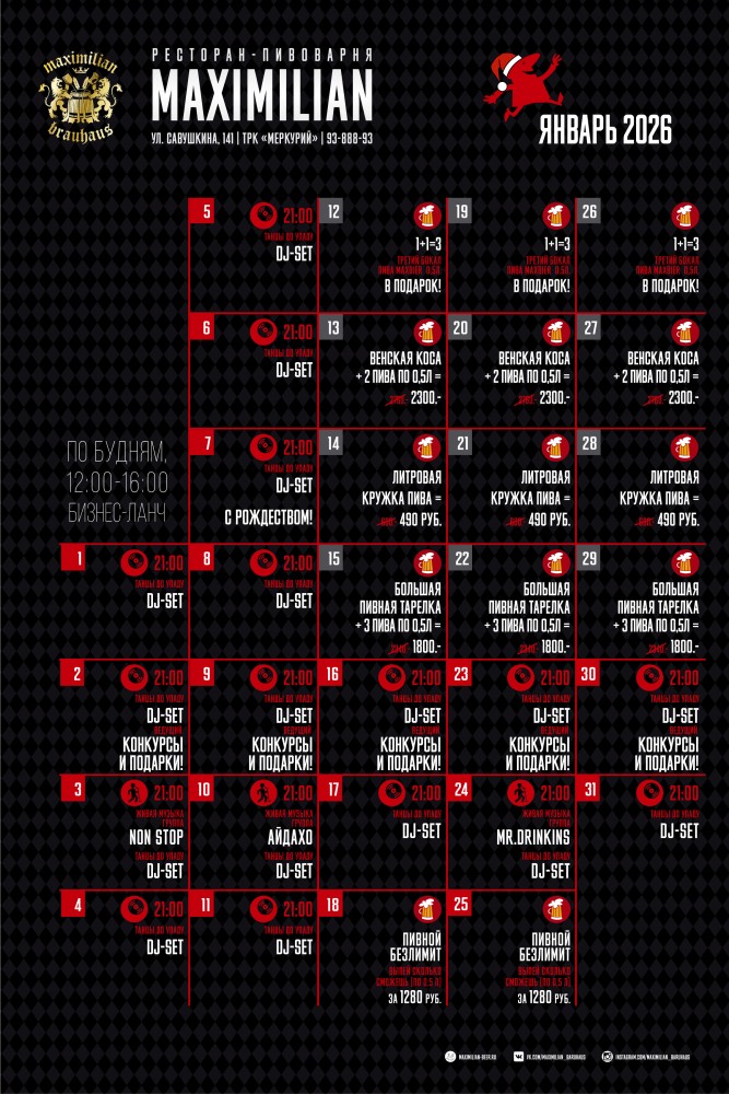 ГлавнаяАфишаСобытия в январе в MAXIMILIAN 31 января Maximilian САВУШКИНА События в январе в MAXIMILIAN